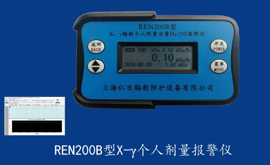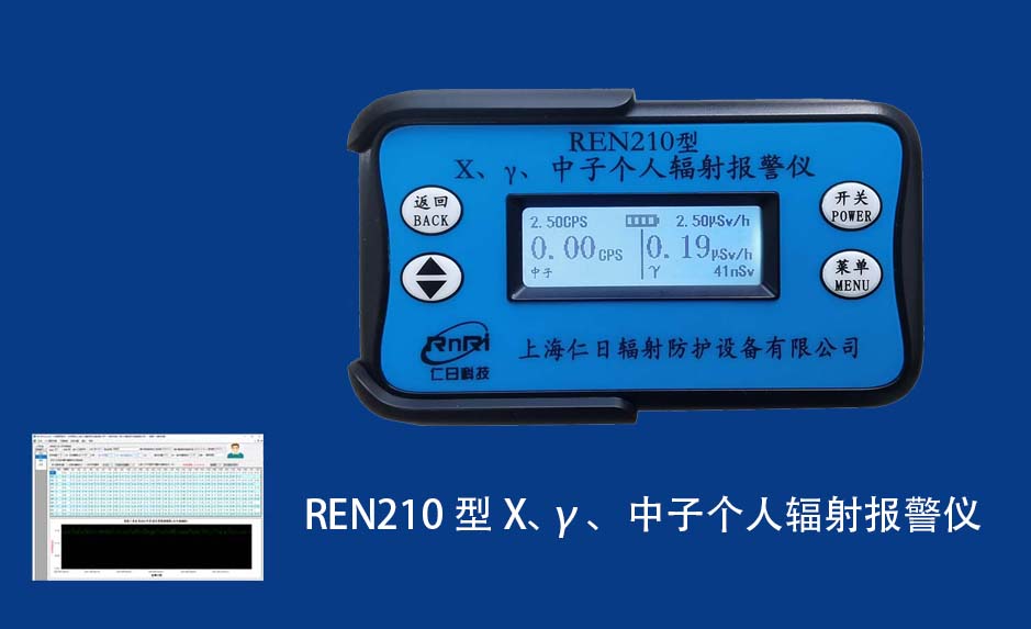 REN210型X、γ、中子個人輻射報警儀內置SiPM和鋰玻璃晶體組成中子探測器儀器,采用反照率方式探測中子射線,同時也能探測X、γ射線。因此它可同事監檢測X、γ、中子三種射線。能顯示工作場所的劑量當量率和累積劑量,更換電池時,日期及累積數據能永久保存。可選配RenRiPersonal個人劑量管理軟件,該軟件可存儲多個人的歷史數據,能記錄日累積、月累積、年累積、輻照時長、計算平均劑量率、扣除或不扣除本底輻射,且以文字和圖譜的方式展現數據。廣泛應用于環保、化工、水泥、煤礦、土木工程、石油、醫院、疾控、進出口商檢、核電、加速器、機場、中子源庫和其他安檢、邊境控制海關檢測等領域中的工作人員進行個人安全防護監測及放射性提示。